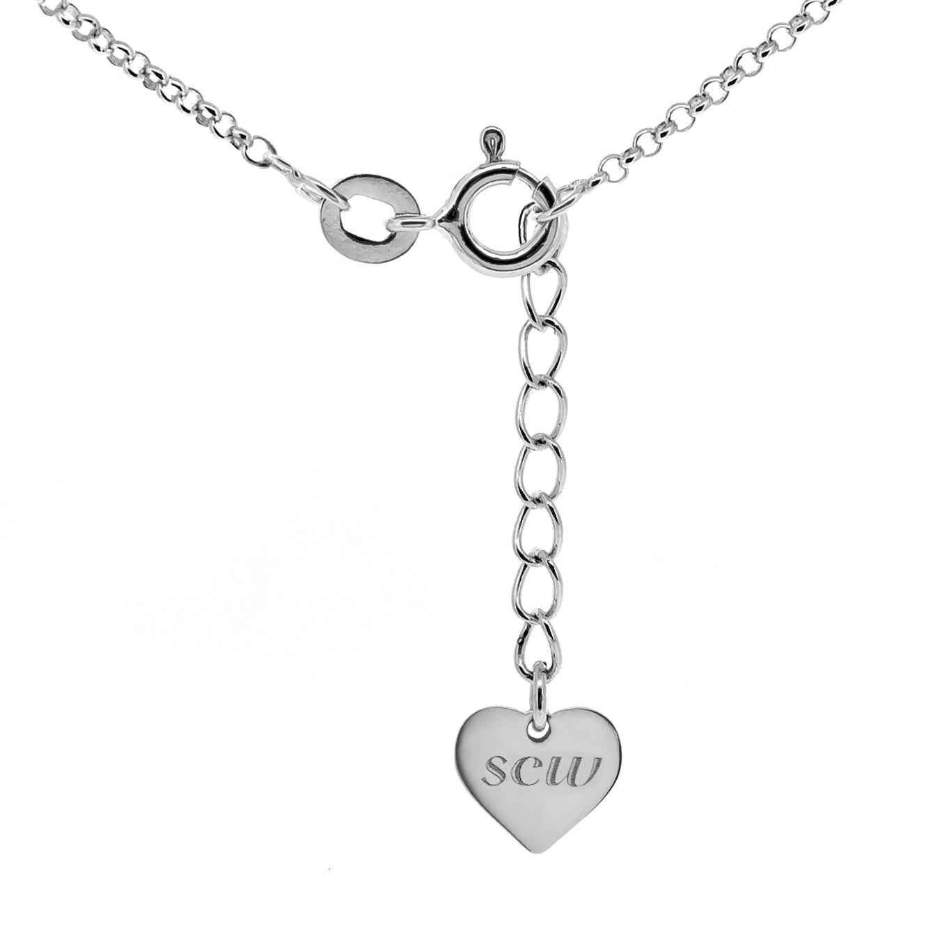 Sterling Silver Round Belcher Chain with Custom Heart Tag on Extender (1.6mm)