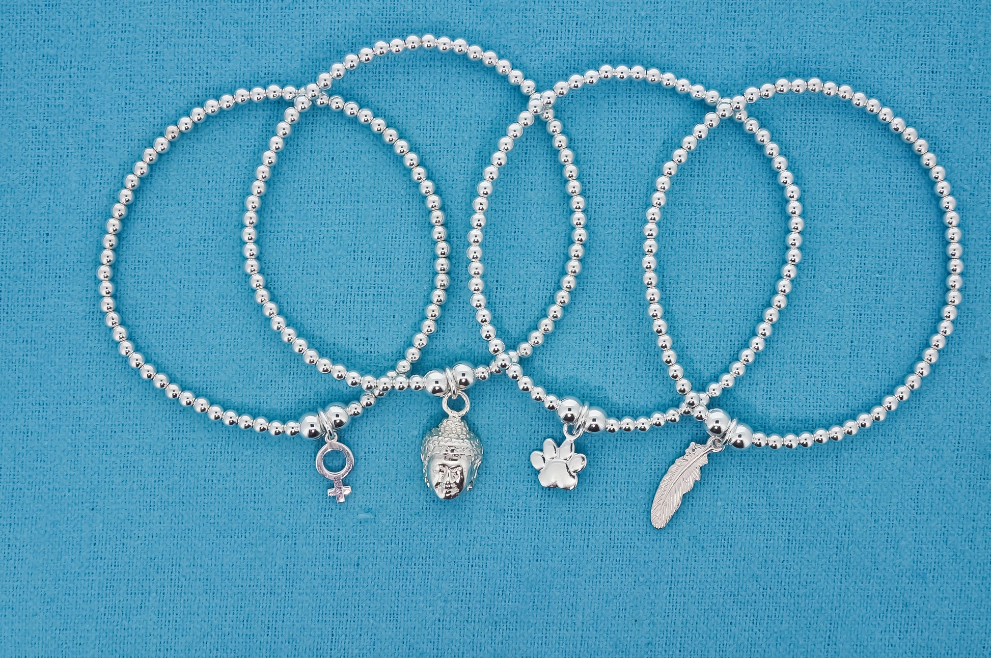 Sterling Silver, Expander 4mm Bead Bracelets, Elasticated Stretch Style